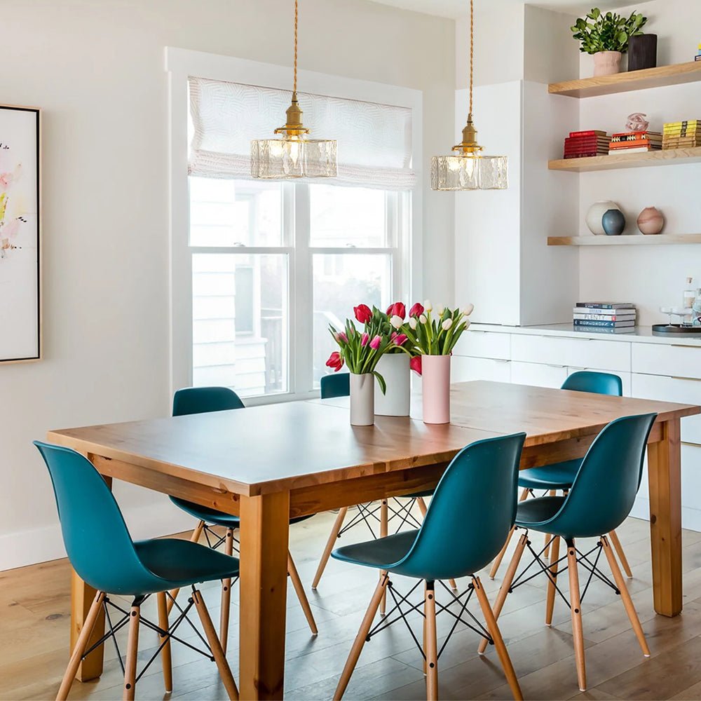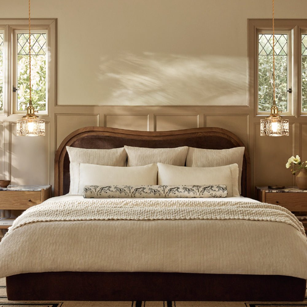 Imagine light not as mere illumination—but as texture, memory, and mood made visible. The vintage 1-light hammered square water glass pendant light is precisely that: a luminous sculpture born from the marriage of industrial heritage and artisanal glassmaking. The square form is bold yet balanced, a geometric anchor in an ocean of curves, but what truly sets this pendant apart is its hammered water glass shade. Each pane of clear glass bears subtle undulations and dimples—like ripples on a pond frozen in time. These textures refract and scatter light in unpredictable ways, casting gentle shadows and shimmering highlights across walls and surfaces. Suspended by natural fiber cords and crowned with aged brass hardware, this square hammered water glass pendant transforms kitchens, dining areas, entryways, and bathrooms into spaces that feel curated, comforting, and deeply human.