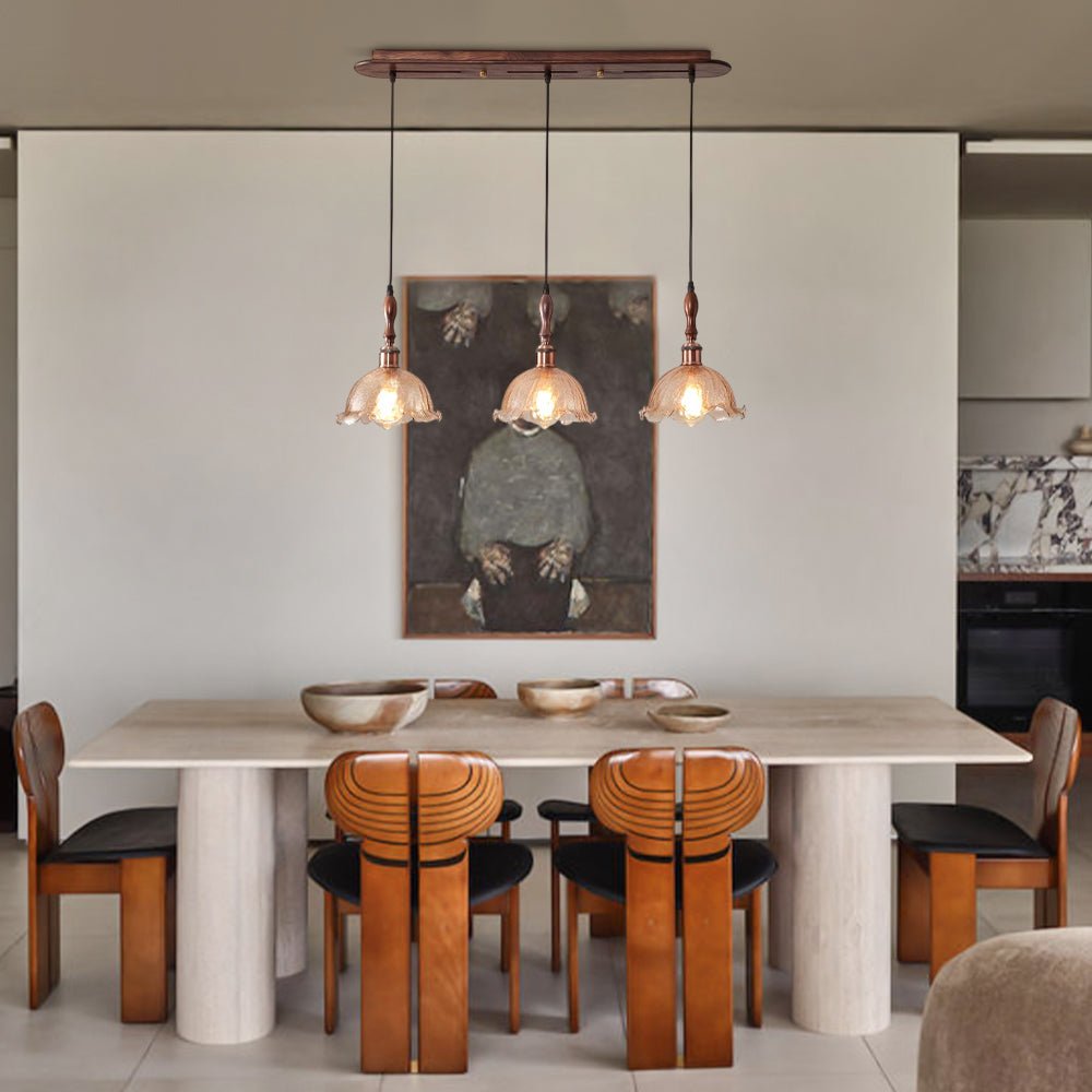 Modern 3-Light Cluster Linear Flower Crackled Glass Pendant Light