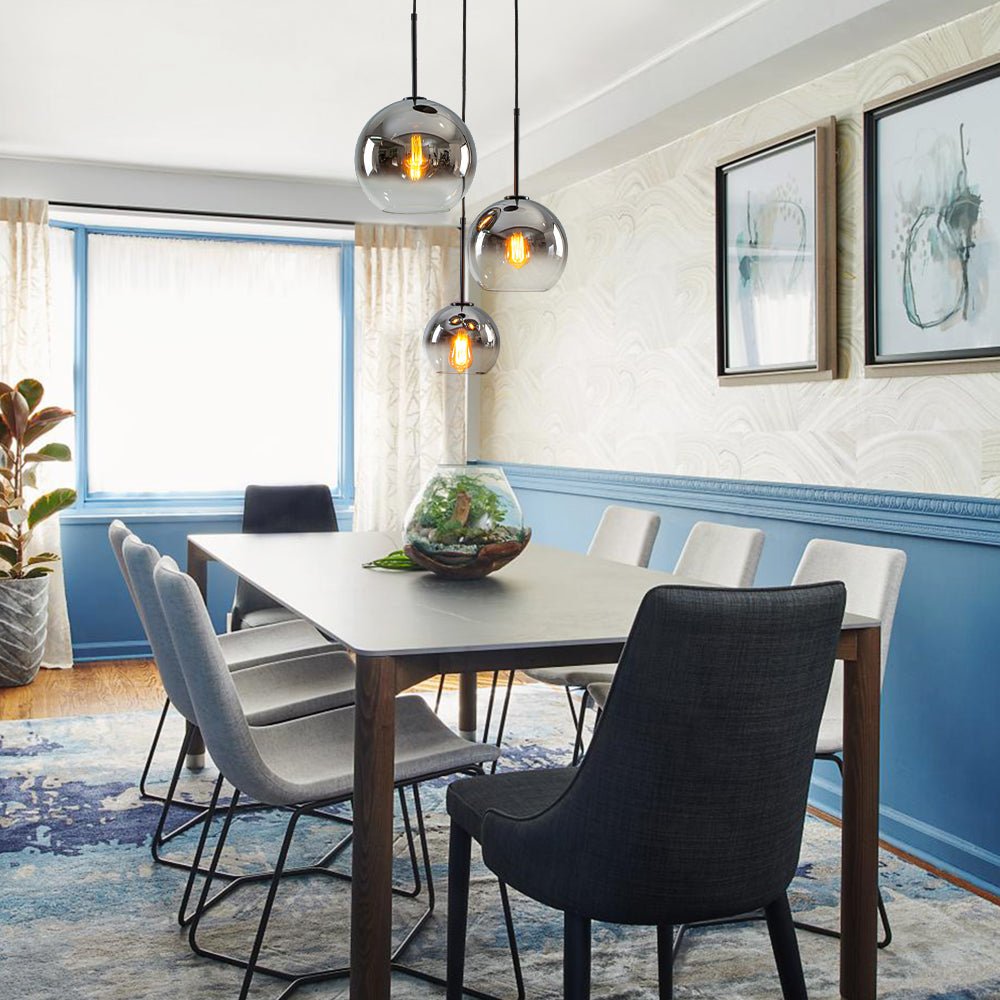 • 3-light cluster spherical gradient glass pendant is compatible with an E27 bulb.
