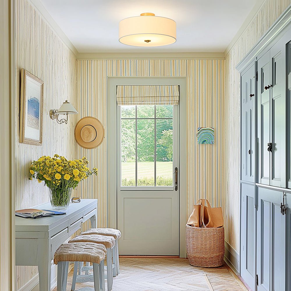 • The fabric drum semi flush mount with fabric and acrylic shade.