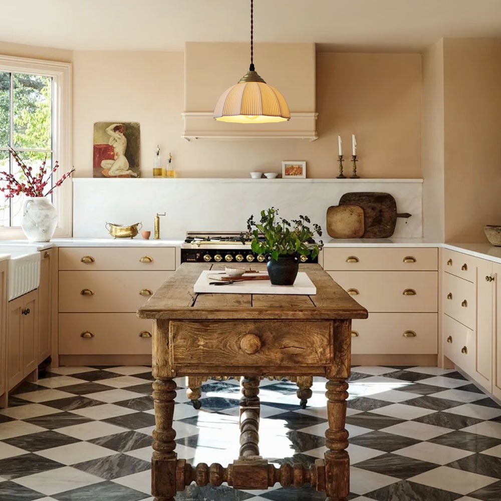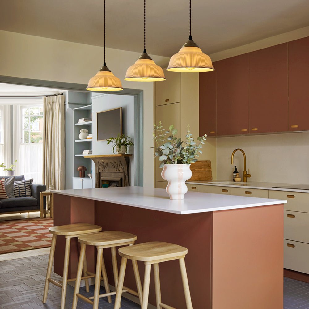 This pleated white ceramic dome pendant light beautifully bridges the gap between vintage charm and modern minimalism, featuring a distinct pleated design that adds texture and warmth to any room. The centerpiece of this pleated white dome pendant light is its dome-shaped shade, crafted from high-quality ceramic with a delightful pleated or ribbed texture. This design mimics the look of a folded fabric lampshade but offers the durability and easy maintenance of ceramic. The creamy white finish reflects light softly, avoiding harsh glare while adding a touch of sophistication. The shade is topped with a brass metal cap that features a classic, stepped design. This metallic accent provides a warm contrast to the cool ceramic, enhancing the retro aesthetic.
