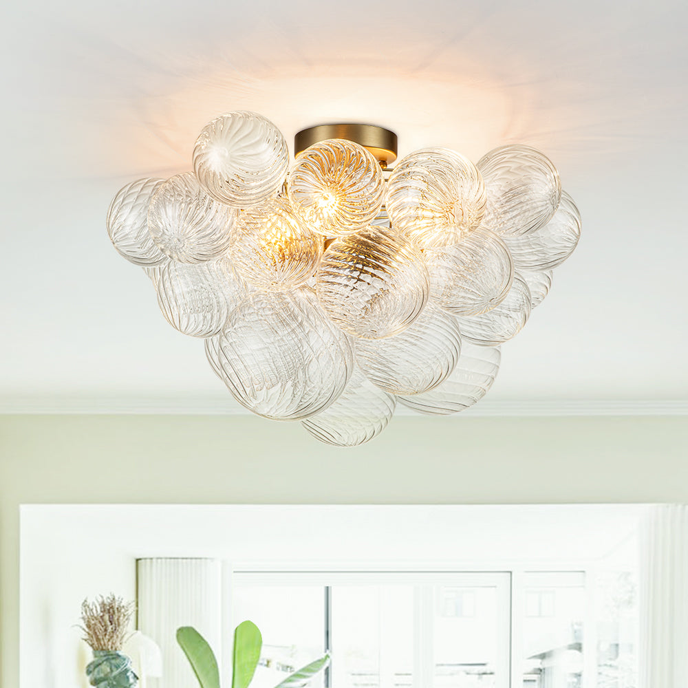 Contemporary 3-Light Ribbed Bubble Semi Flush Ceiling Light