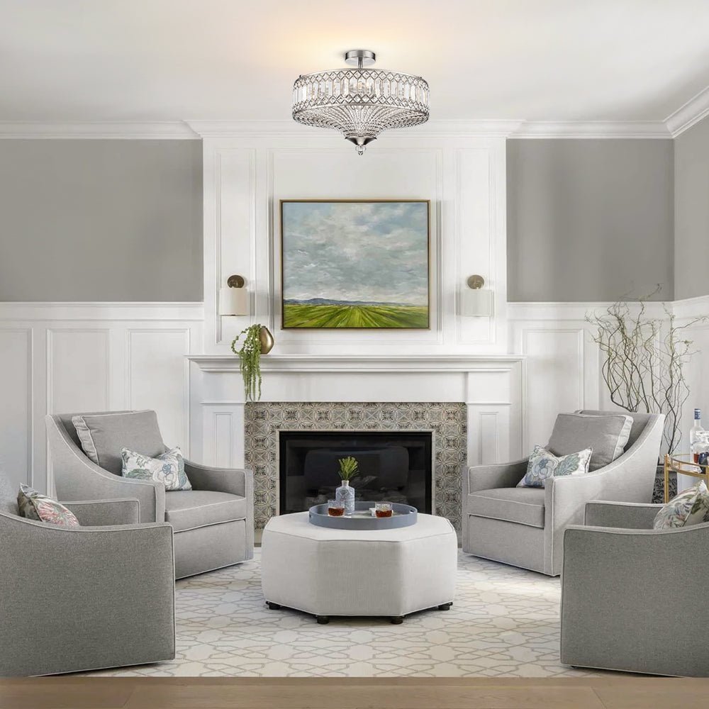 Pendantlightie - 6 - Light Glam Drum Semi Flush Mount With Crystal For Aisle Porch - Semi Flush Mount - Chrome -